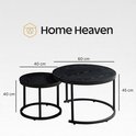 HeyHeaven® Table d'Appoint Ronde Imprimé Bois Zwart - Table Basse 2 Pièces - Tables basses Ronde Ø60 Ø40