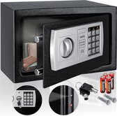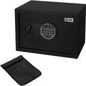 Gardez vos effets personnels, documents et autres objets de valeur dans ce coffre-fort avec une serrure électrique de HI. Ce coffre-fort est fait d'acier massif et équipé d'un mécanisme de verrouillage à 2 boulons et d'un système d'ouverture à code numérique. Dans ce coffre-fort, vous pouvez parfaitement protéger tous vos objets de valeur contre le vol et vous offre également un espace sûr pour stocker vos effets personnels, tels que des documents de voyage, des diplômes, des documents ou un ordinateur portable. La livraison comprend un coffre-fort, 2 clés d'urgence et 4 piles Mignon, AA, LR6, 1,5 V.