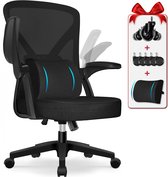 Hiaonyx Chaise de Bureau-Chaise de Bureau Ergonomique-Chaises de Bureau pour Adultes-Accoudoirs Pliants-Support Lombaire-Coussin d'assise épaissi et élargi- Zwart