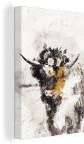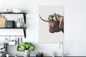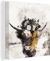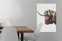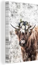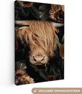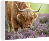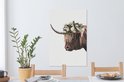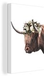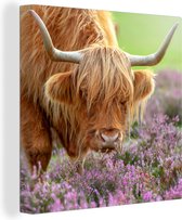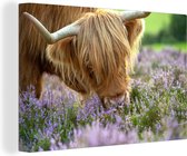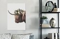 Highlander écossais avec fleurs 60x90 cm - Tirage photo sur toile peinture (Décoration murale salon / chambre) / animaux sauvages Peintures sur toile