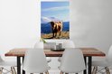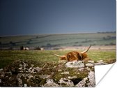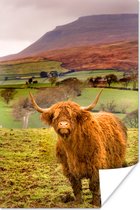 Highlander écossais avec une vue montagneuse Poster 60x80 cm - Tirage photo sur Poster (décoration murale salon / chambre) / Poster Animaux sauvages