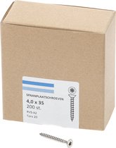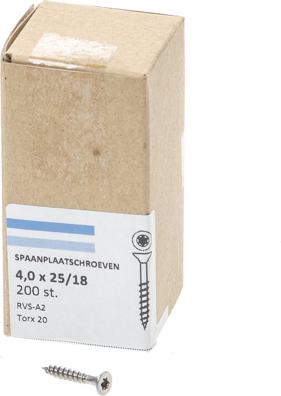 | Commande par: 200 pièces| Entraînement: Torx | Entraînement (taille): T 20 | Description: La vis pour aggloméré Hoenderdaal en acier inoxydable A2 avec tête fraisée et entraînement TX est une vis à filetage tranchant et profond (filetage partiel) et à tige fine. La vis pour panneaux d'aggloméré est la vis la plus couramment utilisée pour tous les types de bois et de panneaux. Les vis pour panneaux d'aggloméré Hoenderdaal sont de qualité professionnelle, une couche de cire spéciale permet de les transformer facilement en divers matériaux de construction. La pointe extra-pointue assure également un démarrage rapide de la vis. Les vis Hoenderdaal pour panneaux d'aggloméré sont emballées dans un emballage en carton neutre et sont disponibles avec différentes formes de tête : tête plate fraisée, culasse et tête de lentille et sont disponibles avec un entraînement Pozi-drive ou TX. | Diamètre (mm): 4 | Type de filetage: filetage partiel | Longueur (mm): 25 | Matériel: acier inoxydable | Marque: Propre marque | Modèle (tête): Tête fraisée plate | Type: en vrac | Brève description: La vis pour aggloméré Hoenderdaal en acier inoxydable A2 avec tête fraisée et entraînement TX est une vis à filetage tranchant et profond (filetage partiel) et à tige fine. La vis pour panneaux d'aggloméré est la vis la plus couramment utilisée pour tous les types de bois et de panneaux. Les vis pour panneaux d'aggloméré Hoenderdaal sont de qualité professionnelle, une couche de cire spéciale permet de les transformer facilement en divers matériaux de construction. La pointe extra-pointue assure également un démarrage rapide de la vis. Les vis Hoenderdaal pour panneaux d'aggloméré sont emballées dans un emballage en carton neutre et sont disponibles avec différentes formes de tête : tête plate fraisée, culasse et tête de lentille et sont disponibles avec un entraînement Pozi-drive ou TX.