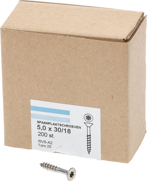 Hoenderdaal Vis pour aggloméré en acier inoxydable tête fraisée TX25 filetage partiel 5.0X30 / 18 (par 200 pièces)