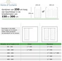 La taille indiquée est en largeur fois la hauteur en centimètres, y compris l'ourlet tout autour, donc la taille nette sans les plis à faire si vous utilisez des crochets à plis. Voir les conseils de taille au bas de la page.