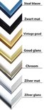 Le cadre photo en aluminium Almelo convient pour une image de 63x74 cm. Cette taille (photo) est égale à la taille du verre du cadre. Attention: une partie du bord du cadre recouvre l'image. Vous souhaitez éviter ce chevauchement ? Commandez cette liste en combinaison avec un passe-partout. La paroi arrière en MDF et le verre artificiel antireflet sont faciles à retirer, de sorte que vous pouvez facilement changer les images vous-même.