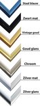 Le cadre photo en aluminium Almelo convient pour une image de 74x100 cm. Cette taille (photo) est égale à la taille du verre du cadre. Attention: une partie du bord du cadre recouvre l'image. Vous souhaitez éviter ce chevauchement ? Commandez cette liste en combinaison avec un passe-partout. La paroi arrière en MDF et le verre artificiel antireflet sont faciles à retirer, de sorte que vous pouvez facilement changer les images vous-même.