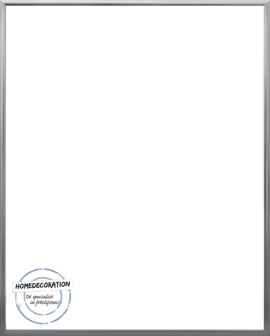 Le cadre photo en aluminium Kampen convient pour une image de 56x67 cm. Cette taille (photo) est égale à la taille du verre du cadre. Attention: une partie du bord du cadre recouvre l'image. Vous souhaitez éviter ce chevauchement ? Commandez cette liste en combinaison avec un passe-partout. La paroi arrière en MDF et le verre artificiel antireflet sont faciles à retirer, de sorte que vous pouvez facilement changer les images vous-même.