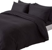 Housse de couette Satin Rayé - Qualité Hotel 230 TC - 2 personnes - 200 x 200/220 cm - Zwart