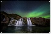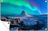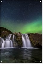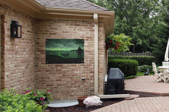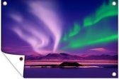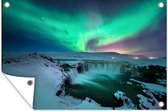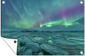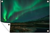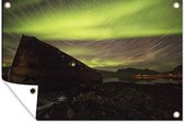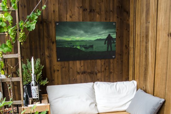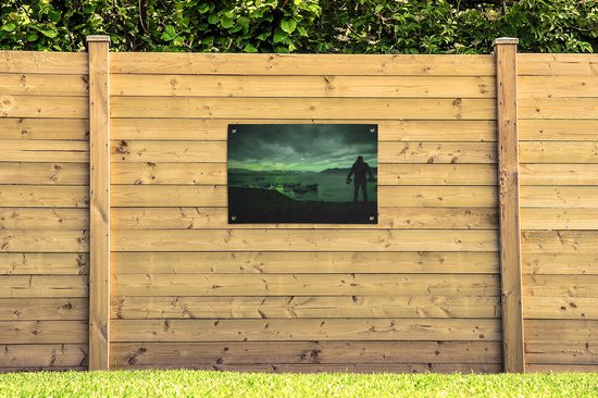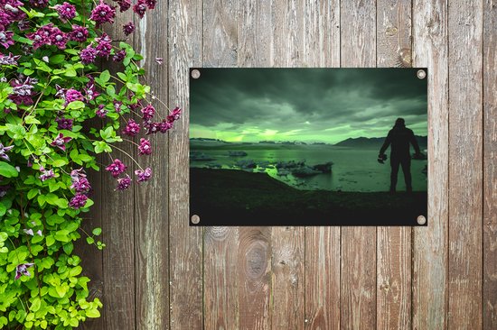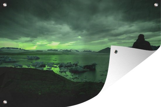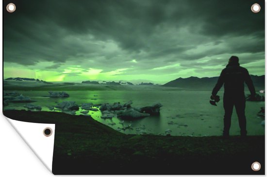 Homme regardant les aurores boréales en Islande affiche de jardin toile lâche 90x60 cm - toile de jardin / toile d'extérieur / Peintures pour l'extérieur (décoration de jardin)