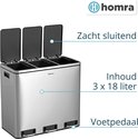 Homra de tri sélectif Homra SPARQ à 3 compartiments - Capacité 3 x 18 L - Poubelle à pédale Trio en acier inoxydable - Poubelle 54 litres