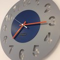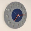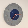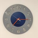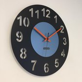 HORLOGE MURALE AMSTERDAM GREY & BLUE CIRCLE -- POINTEURS ORANGE -- DESIGN HOLLANDAIS MODERNE