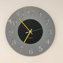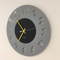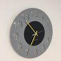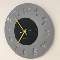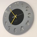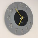 HORLOGE MURALE AMSTERDAM GRIS CERCLE BLACK -- POINTEURS JAUNES -- DESIGN HOLLANDAIS MODERNE