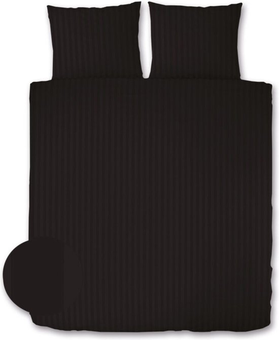 Housse de couette Satin Rayé - Qualité Hotel 230 TC - 2 personnes - 200 x 200/220 cm - Zwart