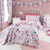 Housse de couette simple 140 x 200 - Rose - Fille - Hartjes - Cœurs - Enfant - Ado - Adulte