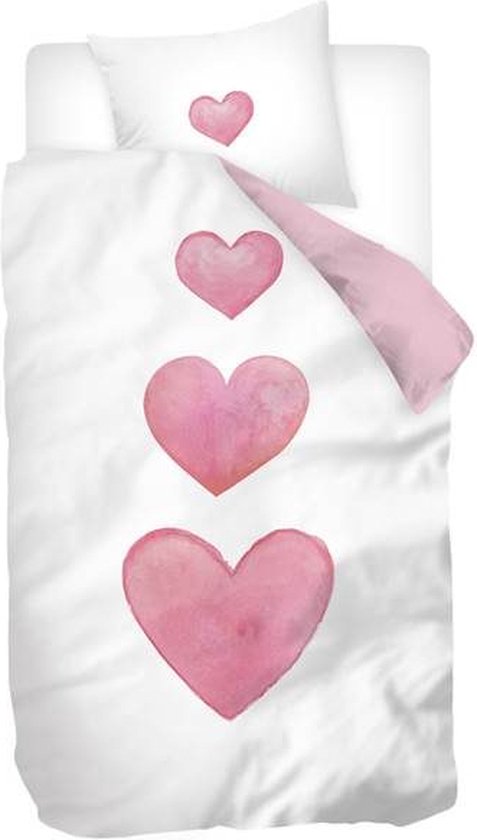 Couette Hartjes - simple avec 1 taie d'oreiller - dekbedovertrek rose - convient pour 1 personne 140 x 200 cm.