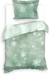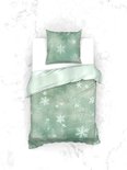 - dekbedovertrek réversible avec imprimé naturel attrayant sur le devant, le dos a une nuance bleu clair avec des flocons de neige blancs