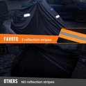 FIT UNIVERSEL - ET BANDES IMPERMÉABLES : La taille universelle 225 x 105 x 125 cm convient à la plupart des vélos. Les coutures sont doublement cousues avec du ruban imperméable à l'intérieur, résolvant efficacement le problème des fuites d'eau. Matériau durable : la housse de moto imperméable Favoto est fabriquée en tissu Oxford 210T de haute qualité, avec un revêtement argenté à l'intérieur, réduit les dommages causés par les rayons UV, ce qui est également respectueux de l'environnement. Il aide à protéger la peinture de votre moto de la pluie, de la chaleur, de la poussière, du soleil, des rayures, etc. Il peut fournir une protection complète, en particulier pour les sièges en cuir véritable. 【2 trous de verrouillage】- Cette housse de moto d'extérieur est équipée de 2 trous de verrouillage, conception antivol. Vous pouvez verrouiller votre moto lorsque vous ne l'utilisez pas. Sangles de tension réglables avec boucles à dégagement rapide robustes pour empêcher la housse de moto de s'affaisser et de flotter au vent. Cordon élastique en bas pour un bon ajustement sur votre moto.【3 bandes réfléchissantes】- Notre housse de moto imperméable dispose de 3 bandes réfléchissantes - une sur le devant et deux sur les côtés pour faciliter la recherche de votre moto dans l'obscurité. La couleur claire ajoute également une touche décorative à la couverture noire pure.