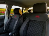 Contenu de l'emballage : 2 housses de dossier de siège avant + 2 Housses de siège avant + 1 housse de dossier de siège arrière + 1 housse de siège arrière + 5 housses d'appui-tête + 1 paquet de crochets d'installation + instructions d'installation et d'utilisation dans une brochure spéciale.
