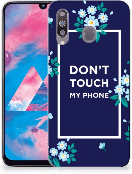 Housse en Cuir Etui de Protection pour Samsung Galaxy M30 Coque Téléphone Fleurs Bleues Dtmp Convient pour Samsung Galaxy M30