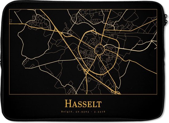 Housse pour ordinateur portable - Carte - Hasselt - Zwart - Or - Housse pour ordinateur portable
