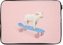Housse d'ordinateur portable - Cochon - Rose - Skateboard - Blauw - Animaux - Pochette d'ordinateur portable
