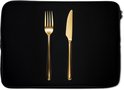 Housse pour ordinateur portable 13 pouces - Couverts - Goud - Couteau - Fourchette - Housse pour ordinateur portable - Dimensions intérieures 32x22,5 cm - Dos noir