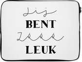 ATTENTION : Mesurez votre ordinateur portable ! Tout ordinateur portable jusqu'à 39,5 x 29,5 cm tient dans cette manche.Cette housse pour ordinateur portable convient à tout ordinateur portable ou MacBook jusqu'à 39,5 x 29,5 cm inclus. Le manchon est fait d'un matériau doux et épais appelé néoprène, qui est un type de caoutchouc élastique. La housse est également équipée d'une double fermeture à glissière qui garantit que la housse est facile à ouvrir. Cela rend la housse pour ordinateur portable très pratique sur le chemin de l'école ou du travail!