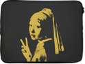 Housse pour ordinateur portable - Fille à la perle - Jaune - Zwart - Housse pour ordinateur portable