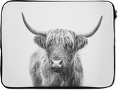 Housse pour ordinateur portable 17 pouces - Highlander écossais - Zwart - Wit - Animaux - Dimensions intérieures 42,5 x 30 cm - Dos noir