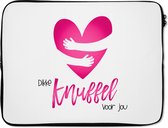 Cette housse pour ordinateur portable / housse pour ordinateur portable convient à tout ordinateur portable ou MacBook. Le manchon est fait d'un matériau doux et épais appelé néoprène, qui est un type de caoutchouc élastique. La housse est également équipée d'une double fermeture à glissière qui garantit que la housse est facile à ouvrir. Cela rend la housse pour ordinateur portable très pratique sur le chemin de l'école ou du travail!