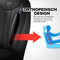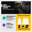 Le modèle Atlanta noir est fabriqué en similicuir résistant avec un aspect cuir luxueux. Le matériau est facile à entretenir et résistant à une utilisation intensive. L'ensemble comprend des housses pour le siège conducteur, la banquette passager, les appuie-têtes et une housse séparée pour l'accoudoir du siège conducteur.