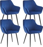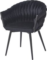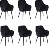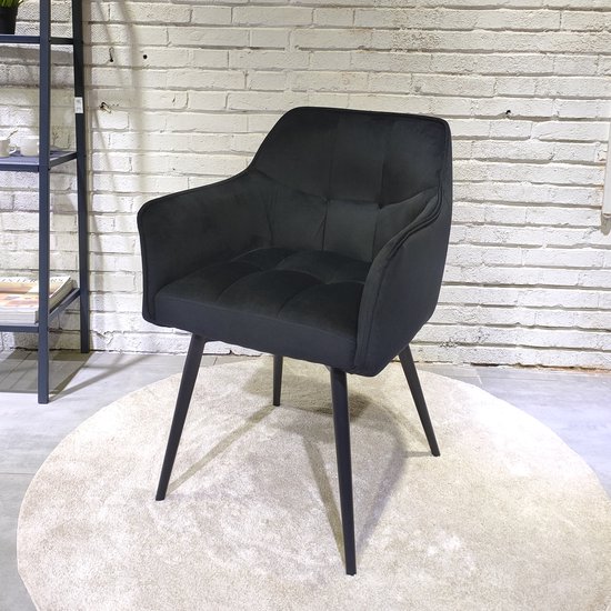 HTfurniture-Chaise de salle à manger Cruz-velours noir-avec accoudoir-pieds noirs