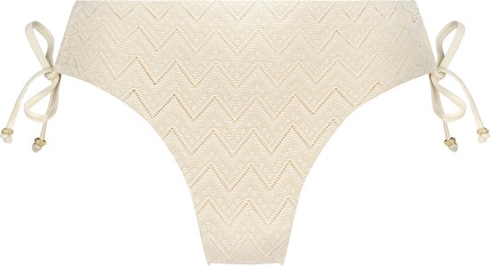 Je kunt dit bikinibroekje combineren met veel van onze zwemkledingitems. De koorddetails met gouden accenten aan de zijkanten zorgen voor een stijlvolle en elegante touch. Perfect om een chique en gecoördineerde strandlook te creëren.