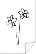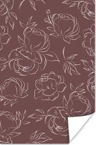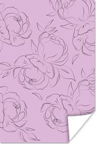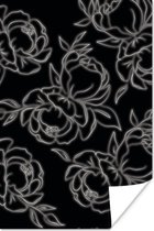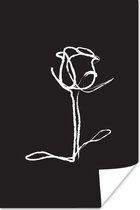 Illustration botanique en ligne d'une rose sur fond noir Poster papier 90x60 cm - Tirage photo sur Poster (décoration murale salon / chambre)