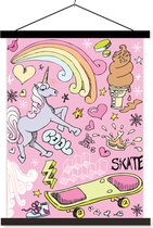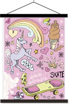 illustration colorée d'un poster école licorne lattes plates vierges 120x160 cm - Tirage photo sur poster textielposter (décoration murale salon / chambre) XXL / Groot format!