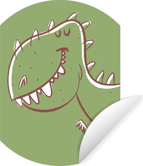 Illustration d'un dinosaure sur fond vert Sticker papier peint cercle mural 80x80 cm / cercle papier peint / cercle mural / cercle vivant - autocollant & découpe ronde