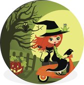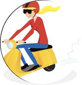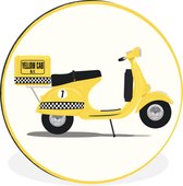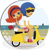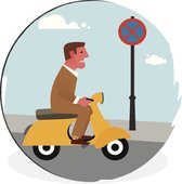 Illustration d'un homme sur un mur Vespa rouge cercle aluminium ⌀ 90 cm - tirage photo sur cercle mural / cercle vivant / cercle jardin (décoration murale)