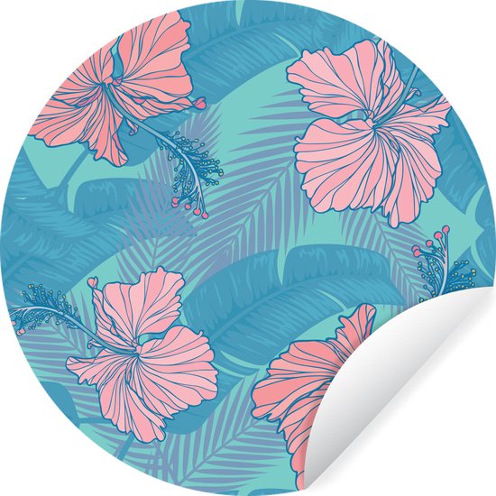 Illustration d'un motif de fleurs tropicales Sticker mural cercle mural 50x50 cm / cercle papier peint / cercle mural / cercle vivant - autocollant & coupe ronde