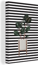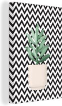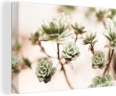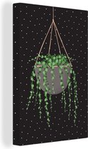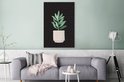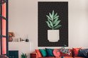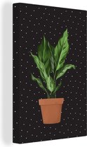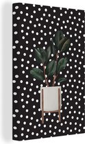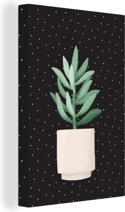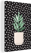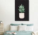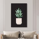 Illustration d'une succulente aux feuilles gris-vert sur fond noir à pois blancs 120x180 cm - Tirage photo sur Toile (Décoration murale salon / chambre) XXL / Groot format!
