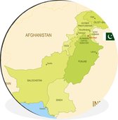 Illustration de la carte du Pakistan en cercle mural aluminium bleu vert ⌀ 60 cm - impression photo sur cercle mural / cercle vivant / cercle de jardin (décoration murale)