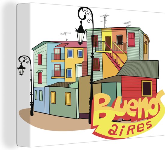 Illustration du quartier de La Boca à Buenos Aires toile 160x120 cm - Tirage photo sur toile (Décoration murale salon / chambre) XXL / Groot format!