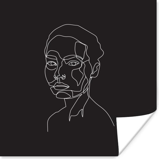 Illustration femme aux cheveux courts sur fond noir poster papier 30x30 cm - Tirage photo sur Poster (décoration murale salon / chambre)