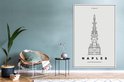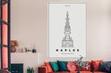 Illustration minimaliste de la métropole Naples 120x180 cm - Tirage photo sur toile (Décoration murale salon / chambre) XXL / Groot format!