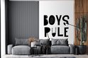 Illustration pour enfants avec une citation 'Boys rule' sur fond blanc 160x240 cm