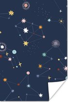 Illustration pour enfants d'un ours sur fond blanc avec des étoiles 40x60 cm