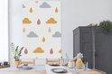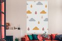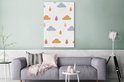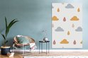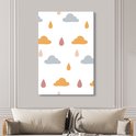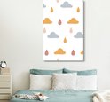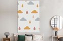 Illustration pour enfants de style bohème avec nuages et gouttes de pluie 120x180 cm - Tirage photo sur toile (Décoration murale salon / chambre) XXL / Groot format!