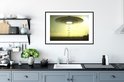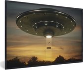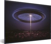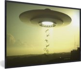 Image en cadre - Une illustration d'un OVNI qui enlève des personnes Cadre photo noir avec passe-partout blanc grand 90x60 cm - Affiche sous cadre (Décoration murale salon / chambre)