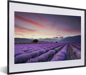 Image encadrée - Beau champ de lavande par une soirée sombre avec cadre photo coucher de soleil noir 30x20 cm - Affiche encadrée (Décoration murale salon / chambre)