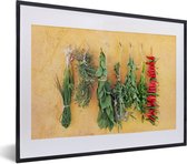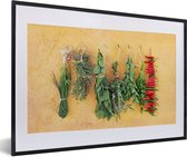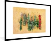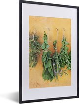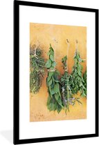 Image encadrée - Cadre photo méditerranéen à base de plantes noir avec passe partout blanc 60x90 90x60 cm - Affiche encadrée (Décoration murale salon / chambre)
