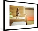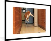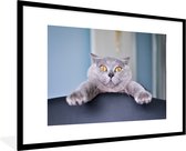 Image encadrée - Chat sautant du canapé cadre photo noir avec passe-partout blanc 60x90 90x60 cm - Affiche encadrée (Décoration murale salon / chambre)